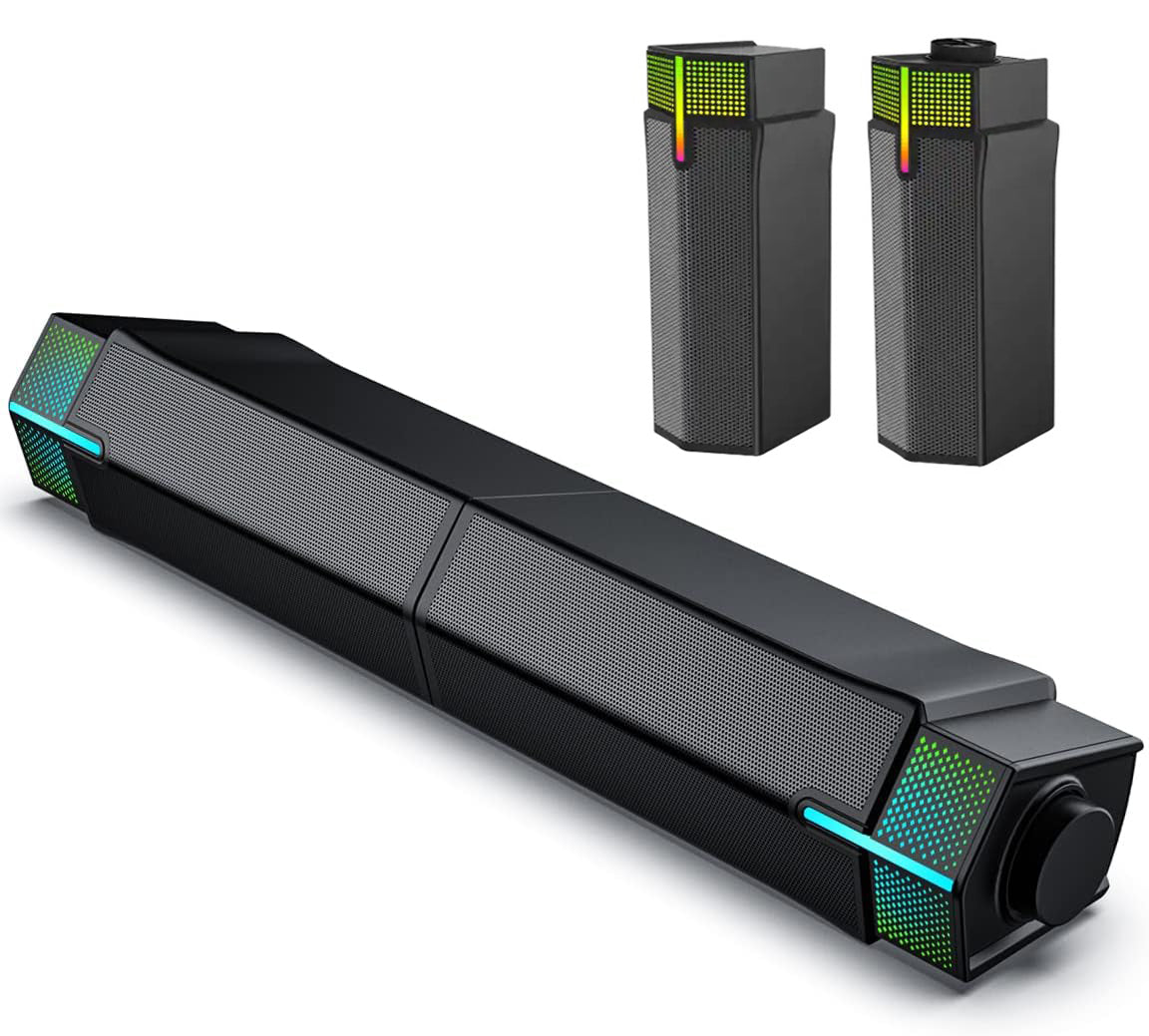 Gadgetplace 2 in 1 Soundbar PC speakers met Bluetooth 5.3: Met RGB verlichting