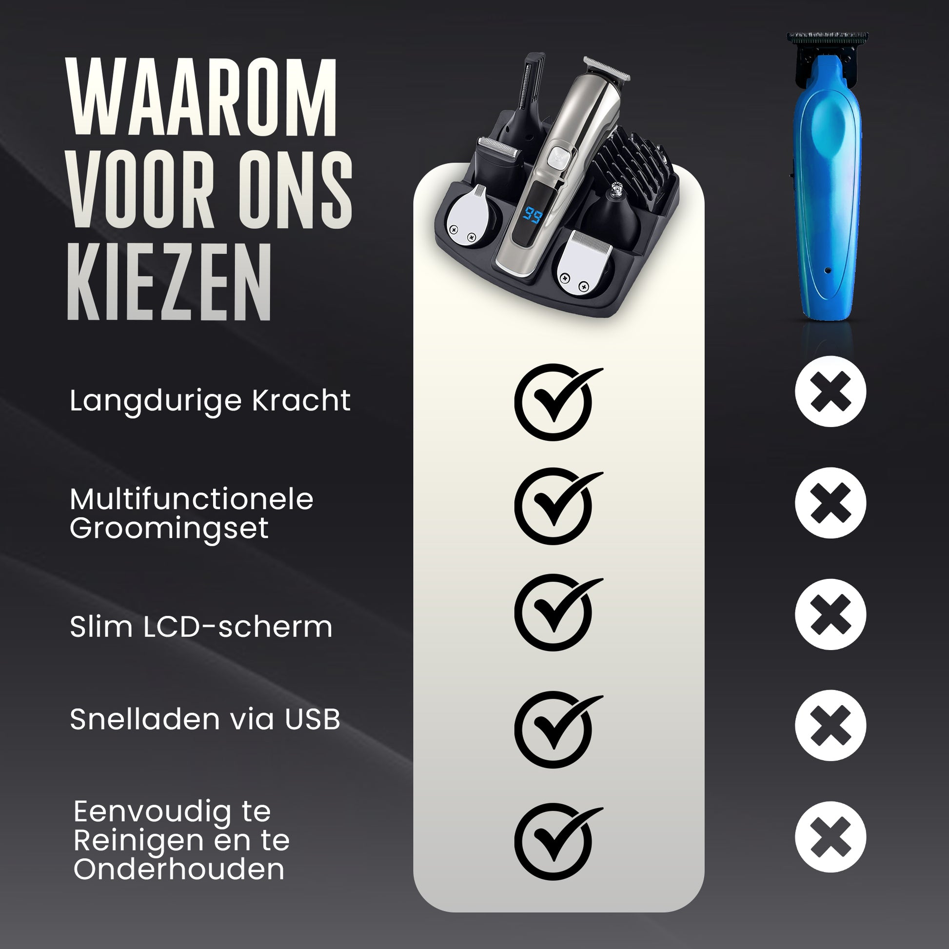 ✓ 6-in-1 grooming kit – baard, gezicht, lichaam & intieme zones